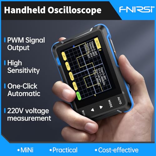 - 【Faster Sampling Speed】FNIRSI DSO152 handheld oscilloscope has a real-time sampling rate of 2.5 MS/s and a 200 KHz bandwidth. The 10 x probe can measure up to 800 VPP, which is equivalent to 280 V AC. Voltages up to 400 V can be measured