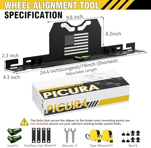 - High-Quality Materials: The wheel alignment tool is made of high quality iron that is rust and corrosion resistant, featuring a painted finish that gives it rust-resistant durability, providing you with outstanding durability and reliability. Its durability ensures that the precise alignment performance is maintained even after extended use.