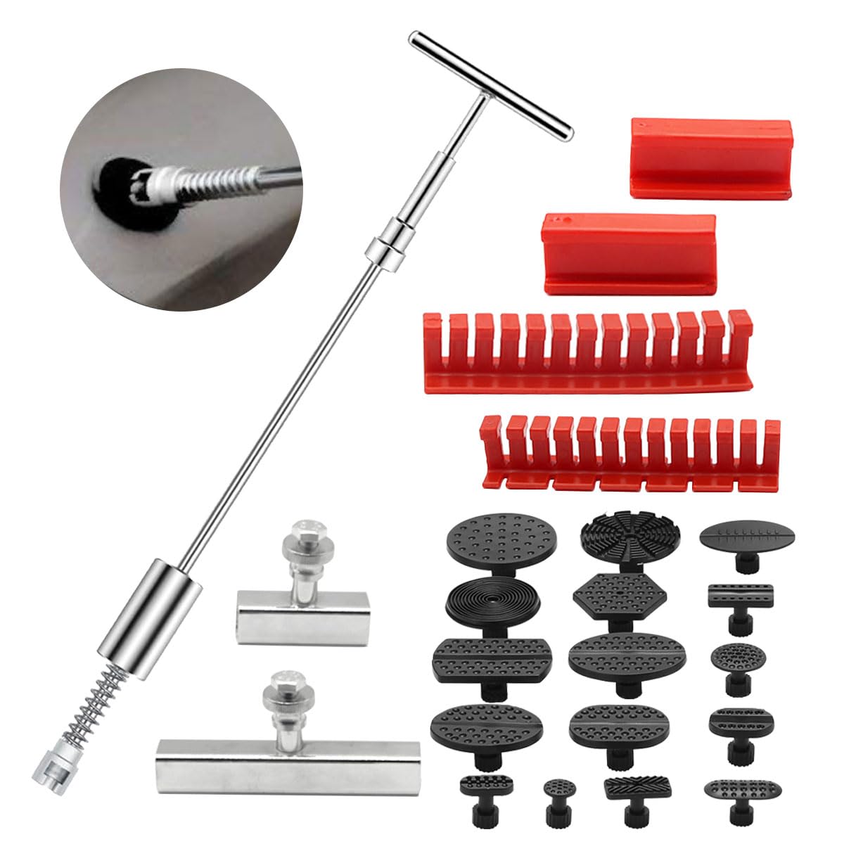- 【High Quality】:This car dent puller kit is made of high-quality metal, plastic and silicone, with high hardness and strong tensile strength. It will not break or deform within the normal pressure range and can be reused for a long time. Moreover, the handle of the puller is smooth, comfortable to handle, and easy to operate, providing a reliable solution for dent repair.