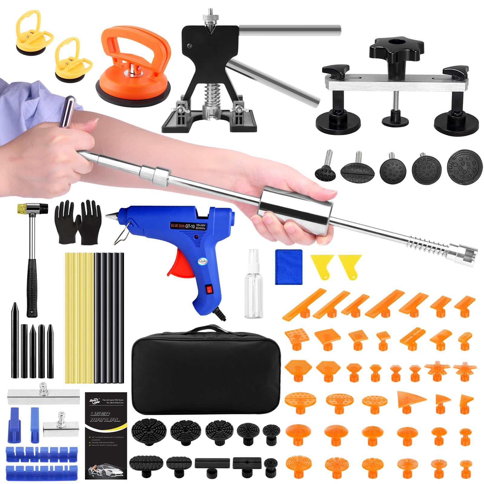- 【Package Include】:This set of accessories is complete, including 1 paintless dent lifter repair tool puller, 18 blue tabs, 1 glue shovel, and 5 yellow glue sticks. With complete accessories, it reduces your time searching for other parts, allowing you to easily repair car dents and improve your efficiency in repairing cars.