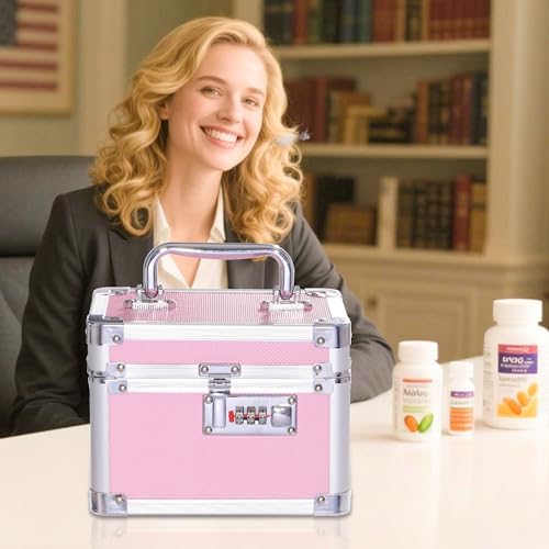 Small Medication Combination Lock Boxes with Code for Personal Items, Medicine Lockbox for Documents - 7.1 x 5.1 x 5.3 Inches Pink
