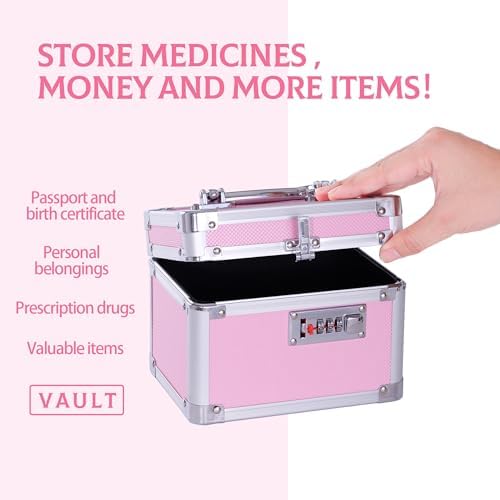 - 【PROTECT YOUR VALUABLES & KIDS】 Portable small pink digital combination lock box keep your important things, medications and other valuables such as jewelry safe and secure, ESPECIALLY ensuring medicine safe for kids - lock box with combination, locking file box.