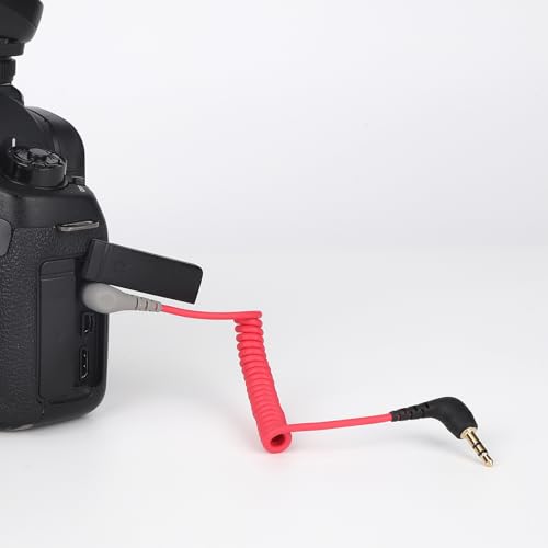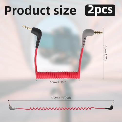 2pcs 3.5mm TRS Microphone Cable, Coiled Male to Male Audio Patch Cord Compatible with DSLR Cameras DJI Mic 2 & Rode Microphone Wireless Pro Adapter Accessories (Red, Black, Gray)
