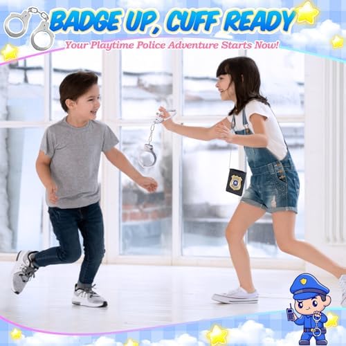- DURABLE & SAFETY & EASY TO USE: IVENRXIU police gear for kids is made of high-quality materials, sturdy and durable, comfortable to wear, with realistic details, smooth surfaces, and no burrs or fading issues. The handcuffs are easy to open and close, suitable for children aged 3+ to grip