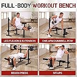 【No Worry Buying】 We offer a lifelong warranty guarantee for the weight bench, so buy the weight bench with confidence. If there is any problem with it, don't hesitate to contact us, and we will response and solve it within 24 hours. Your satisfaction is our top priority. 【Bench Press with Leg Extension and Leg Curl】 Our versatile workout bench includes a dual-function leg developer allowing you to strengthen your leg muscles by adjusting the weight plates to change resistance and gradually increase intensity according to your workout plan for optimal results.Besides, the leg developer with 4 anti-tear PVC foam rollers can greatly protect your legs and avoid injuries. 【9 in 1 Bench Press】This OPPSDECOR all-in-one weight bench includes an adjustable weight bench, a heavy-duty barbell rack and a dual-function leg developer, allowing you to do lever bench press, one-arm dumbbell row, dumbbell press, leg curl & extension, sit-ups and more. (It's worth mentioning that weights and barbells are not included.) 【4-Level Rack & 4 Backrest Positions】 The height of the barbell rack can be adjusted to 4 levels. Besides, Equipped with 4 backrest positions, it can be used as a flat, decline, incline workout bench which is flat enough for core training and adds variety of choices to your exercises. 【Thickened Cushion & Comfortable Pad 】OPPSDECOR weight bench set seated cushion and backrest made of premium grass mat texture materials that can reduce muscle fatigue during workouts.. Non-slip and aesthetics, waterproof and sweatproof, dust and dirt can be easily wiped away. 【Folded to Save 80% Space & Easy Assembly】 The upgraded workout bench is easy to carry and store. Simply adjust the lock to quickly fold, and put it in the corner or under the bed after you finish workout. Besides, with our installation guide, you can assemble it by yourself without any hassle.