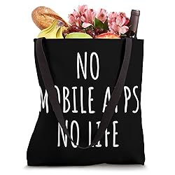 No Mobile Apps No Life fits app developers, coders, and software engineers passionate about mobile UX, coding languages, and app design. Great gifts idea for startup founders, tech students, or mobile innovators. Ideal for hackathons, dev teams, or coding bootcamps, this design suits programmers, UI/UX designers, and software testers. Great gifts idea for tech lovers, software architects, or mobile app fans. 16” x 16” bag with two 14” long and 1” wide black cotton webbing strap handles. Made of a lightweight, spun polyester canvas-like fabric. All seams and stress points are double-stitched for durability, and the reinforced bottom flattens to fit more items and hold larger objects. Spot clean/dry clean only.