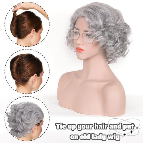 - Old Woman Wigs: Old women costume has a wide range of applications. It can make you stand out in campus drama performances, 100-day parties, makeup parties, Santa Claus lady suits, Halloween grandma suits, theme parties, group performances and art festival performances. Wear the old women costume to introduce diverse surprises into daily entertainment and holiday-themed outfits