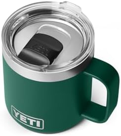 YETI Rambler 10 oz Ceramic Lined Stackable Mug, Vacuum Insulated, Stainless Steel with MagSlider Lid, Black Forest Green