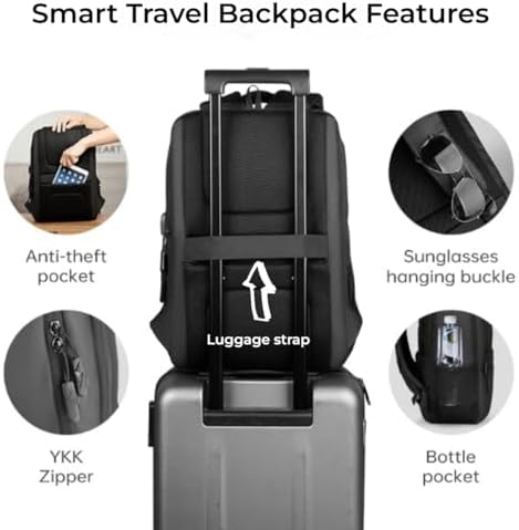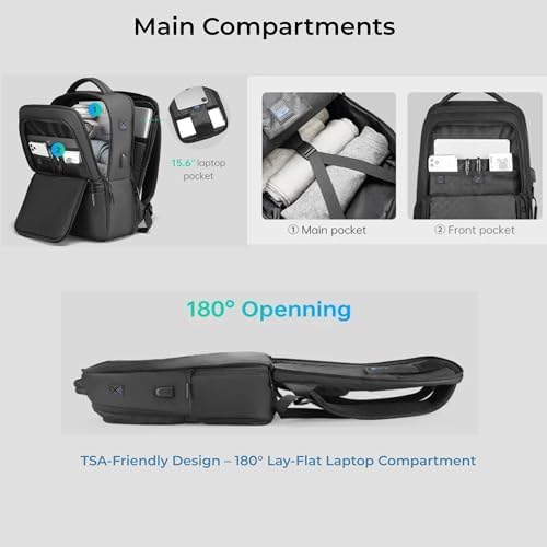 - TRAVEL-READY FEATURES: Built-in USB charging port, headphone plug, luggage strap, and TSA-friendly laptop compartment that opens 180 degrees.