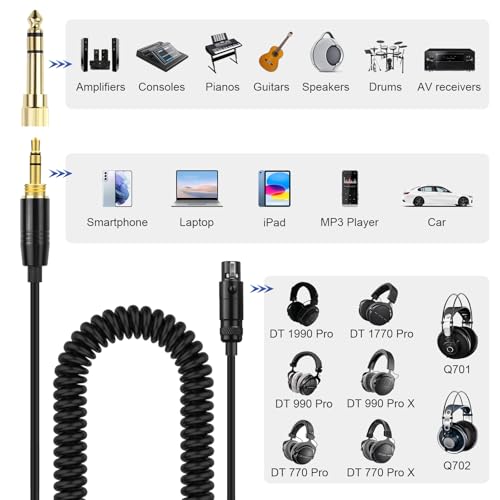 Replacement Audio Cable Compatible With Beyerdynamic DT 1990 Pro, DT 1770 Pro, DT 990 Pro, DT 990 Pro X, DT 770 Pro, DT 770 Pro X Headphone, for AKG Q701, Q702, with 6.35mm Adapter (4.6 FT-13.4 FT)