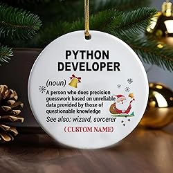 Personalized Python Developer Christmas Ornament 2025 – Funny Ceramic Definition Ornament, Custom Name Xmas Tree Decoration Gift for Staff or Retirement