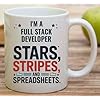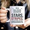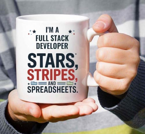 Gift Idea Humorous Gift Idea for a Full Stack Developer on 4th July, for Coffee Lovers, Coworkers, I’m a Full Stack Developer, Stars, Stripes, and Spreadsheets 11 Oz White Ceramic Coffee Mug
