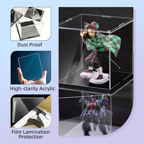 Acrylic Display Case, Clear Display Cases for Collectibles Assemble Cube Display Box Alternative Glass Case for Display Action Figures Home Storage Organizing Miniature Figurines (7.8x7.8x7.8 inch)