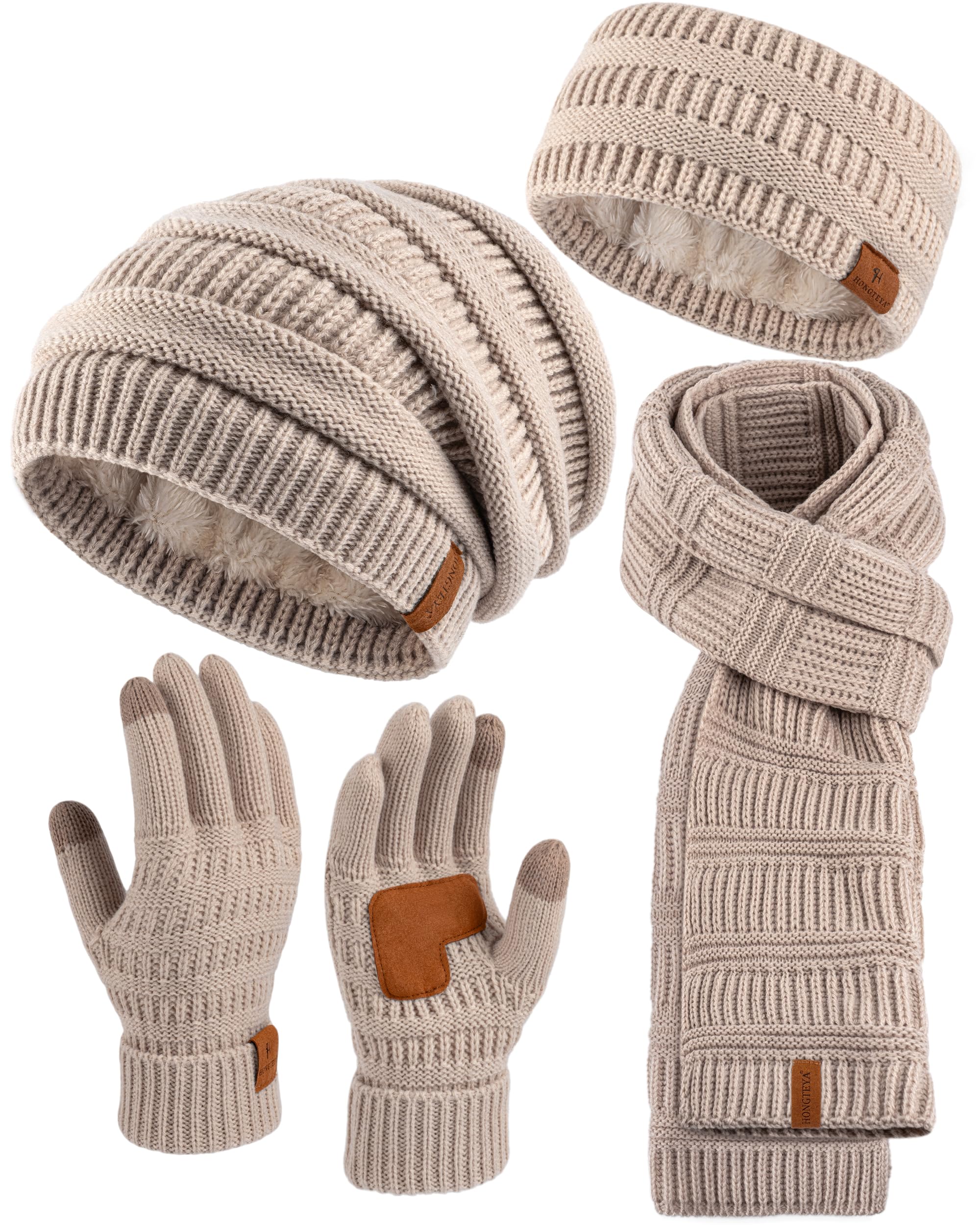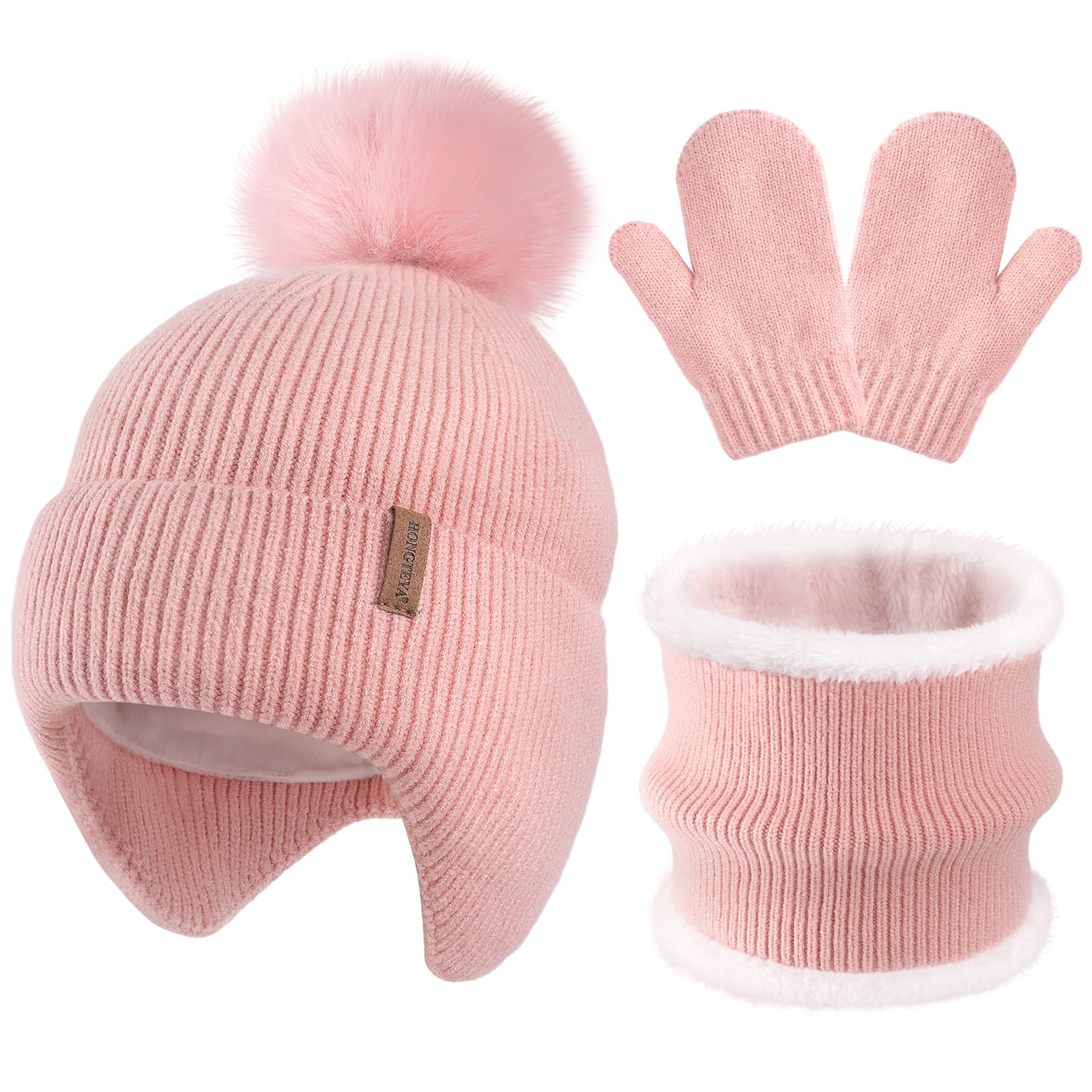 HONGTEYA 4 Pcs Kids Winter Hat Gloves Scarf Set, Thicken Warm Earmuff Neck Warmer Set for Boys Girls 3-15