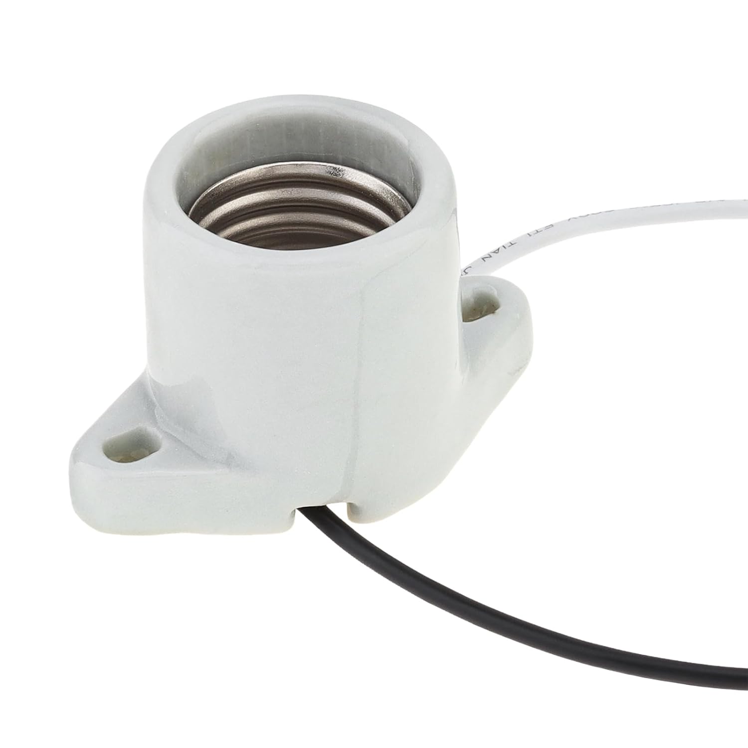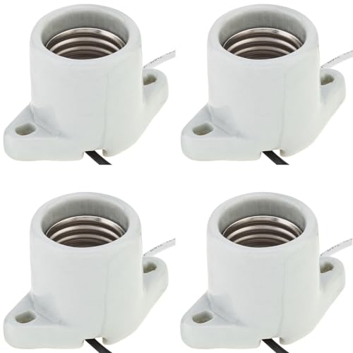 RTNLIT Porcelain E26 Light Socket, Medium Keyless Threaded Base Ceramic Lamp Bulb Holder with Two Hole Flanged Mounting and Wire for Indoor Garage Closet Lighting(Pack of 4)