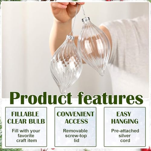 - Complete Ornament Set with DIY Potential: this package includes 6 large 5.8 inch blown glass Christmas ornaments and rust-resistant metal hooks for secure yearly display; Their ample internal space lets you add glitter, banknotes, or confetti for personalized DIY designs, elevating your tree decor with style