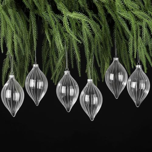 - Festive Elegance in Every Swirl: embrace the minimalist glass Christmas ornaments trend with our elegant, transparent glass decor; Effortlessly enhance your tree with these 5.8 inch Christmas balls, suitable for adding a subtle, yet eye-catching touch of sophistication that complements any holiday theme