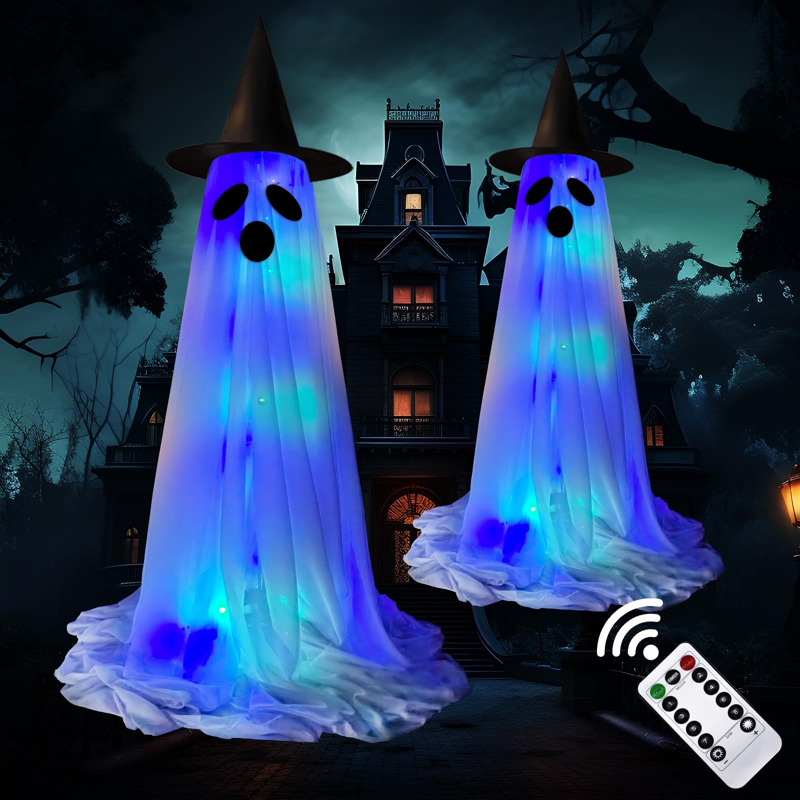 ZeeDix 2 Pack Halloween Light Up Ghosts Decorations, LED Lights & Remote Control - Lighted Up Spooky Ghosts for Yard Porch Outside Front Door Outdoor Indoor Decor
