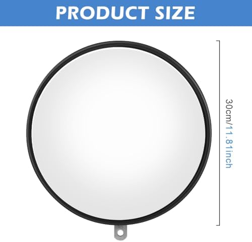 - 【WIDE ANGLE DESIGN】Safety mirror with dia. 30cm/11.81inch diameter, normal 180° curving for wide angles,max view angle: 220°.The 180° wide angle of this round mirror enables a full overhead view of any area that requires frequent monitoring and thus helps improve security.