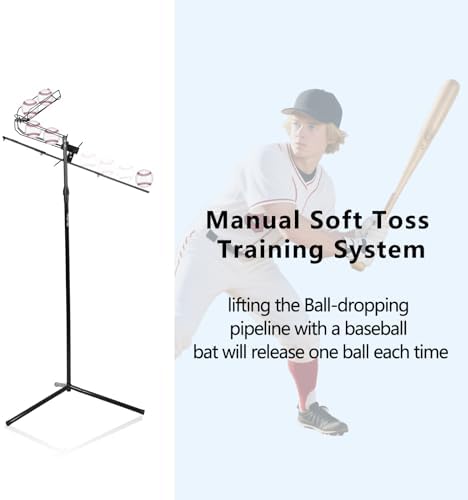 Baseball Soft Toss Pitching Machine | Training System, Support Auto & Manual Ball Drop, Height Adjustable, Hold Up to 10 Balls, Baseball Hitting Swing Trainer for All Ages and Skill