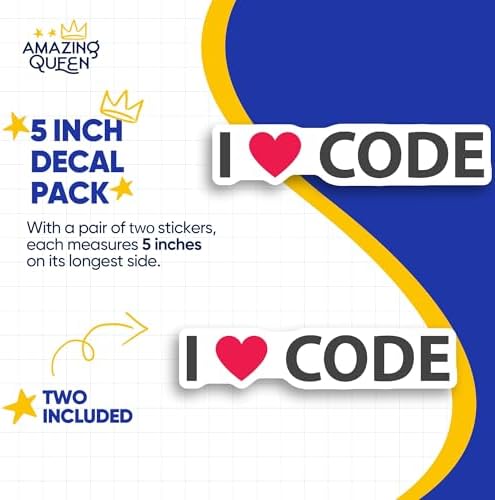 Show your appreciation for coding with these "I Heart Code" Stickers. This pack includes two identical stickers, ensuring you have a spare or can decorate multiple items. These stickers are ideal for anyone who loves programming or software development. Express your passion for coding with these distinctive stickers. Enhance your gadgets, notebooks, or any personal items with a touch of coder style. A simple way to display your love for programming. Ideal for programmers, developers, and tech enthusiasts. Each pack includes two stickers of the same design. You will receive two identical stickers in one pack.