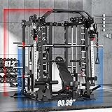 Smith Machine with Cable Crossover System, Multi-Function Squat Rack Power Cage for Home Gym, Power Rack and Packages Weight Sets