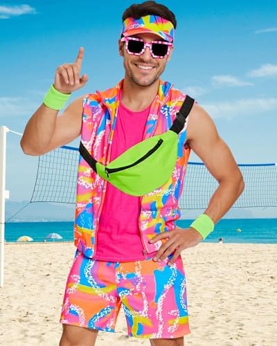 80s 90s Workout Outfit for Men 10pcs Halloween Adult Cosplay Costume Accessories