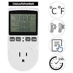 Temperature & Timing Control: Manage a wide temperature range from -40~248℉ (-40~120℃) with a precision of ±1%, featuring F01-F04 multi-mode timing functions for customizable control. Robust Electrical Specifications: Handles up to 15A at 120V ± 15% AC, making it suitable for various applications including greenhouses, reptile enclosures, and homebrewing setups. Interface: Equipped with a large, easy-to-read LCD display and convertible Celsius/Fahrenheit temperature display for seamless operation. NTC Temperature Probe: Comes with a 3m long NTC 10K sensor probe, enhancing accuracy and ensuring reliable environmental monitoring; not recommended for submersion in water exceeding one month. Additional Functionalities: Offers temperature calibration, a reset function, and data storage during power outages. Note: temperature control and timing functions cannot be used simultaneously.