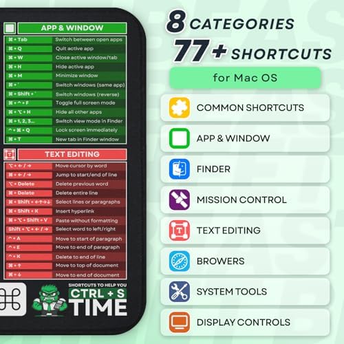 - [MacOS COMPATIBLE] – Features essential macOS shortcuts to help you navigate, manage files, and multitask faster. From screenshot commands to window controls, this pad keeps key Mac functions at your fingertips.