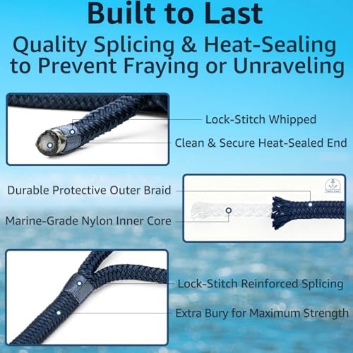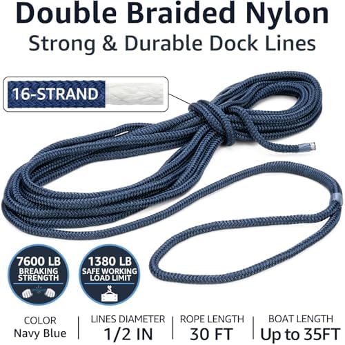 - Made of rugged double braided nylon material, these boat lines ensure high tensile strength (7,600 lb average), exceptional shock absorption, and high abrasion resistance. The 16-strand braided construction prevents snapping while providing enhanced resilience