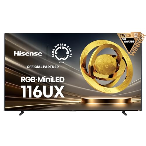 Hisense 116-Inch Class Premium UX Series RGB-MiniLED 4K UHD HDR Google Smart TV(116UX, 2025) - RGB Backlight MiniLED, Up to 8000 nits, 3D Color Master Pro, Native 165Hz Panel, 6.2.2 CineStage X