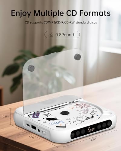 - 【Rechargeable Battery CD Player】: This CD player portable has a built-in rechargeable battery, it charges so can take it anywhere, no need to always plug the charging cable into the cd player when playing music and it is convenient to carry when going out.The battery life is impressive—You charged it for around three hours, and it lasted at least six hours, still going strong.