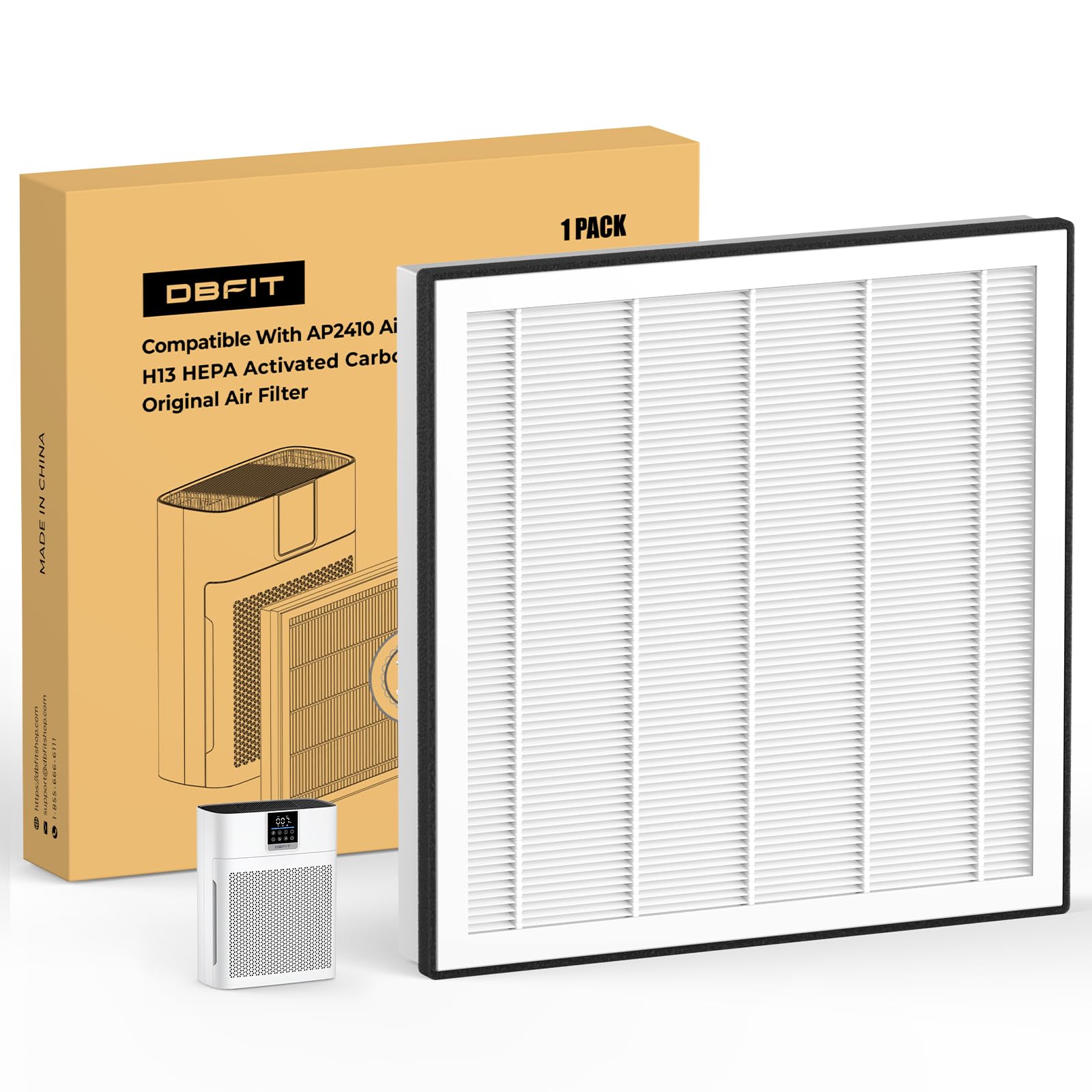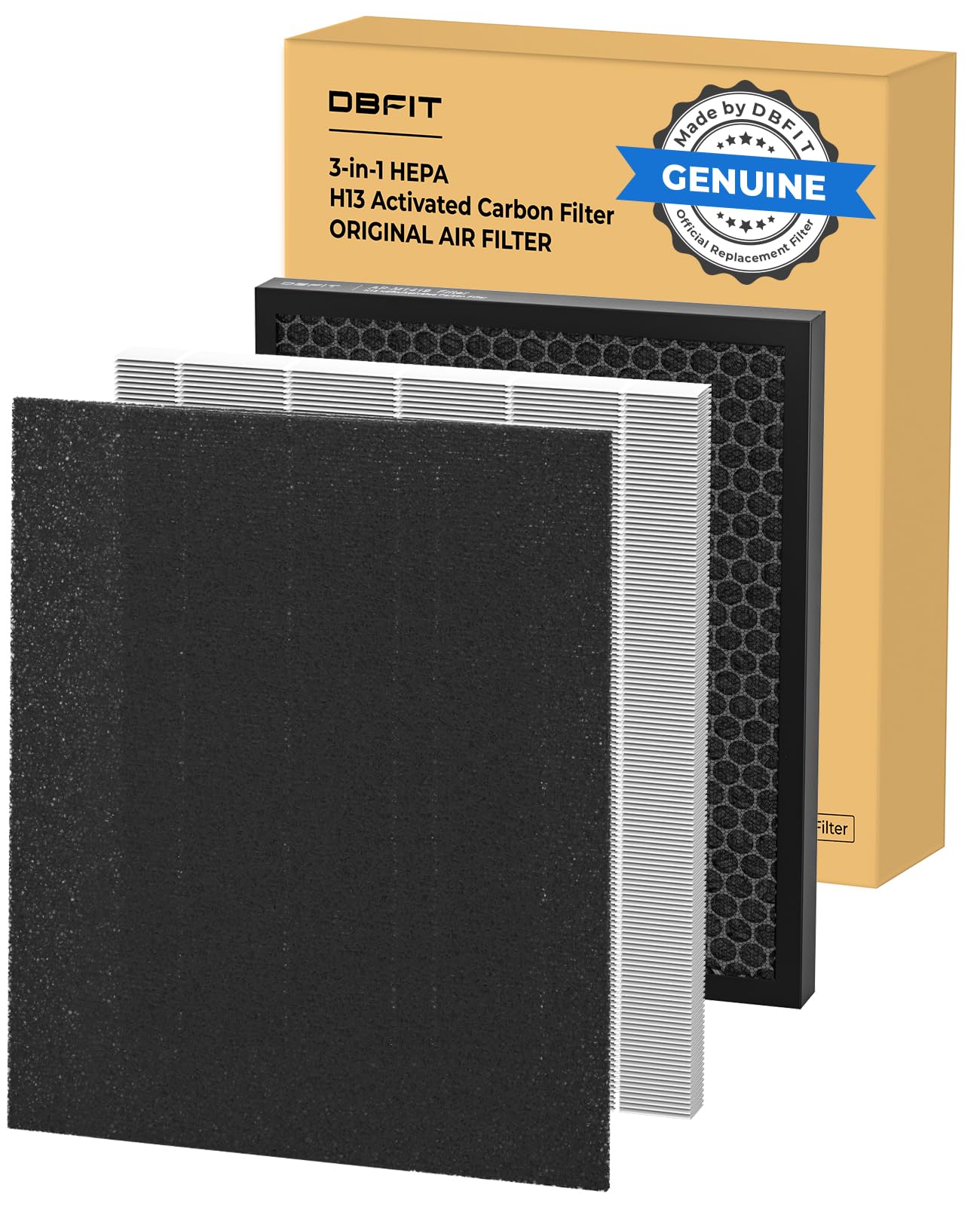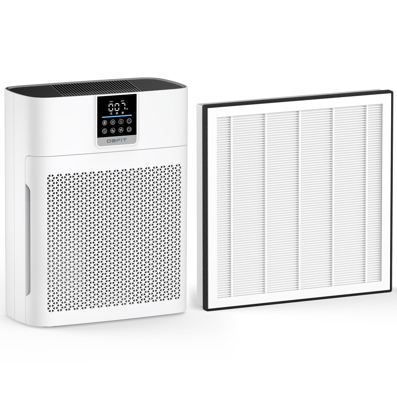 - 3-STAGE FILTRATION FOR FRESHER AIR– DBFIT pet air purifiers combine a durable nylon washable pre-filter, a composite True HEPA + honeycomb activated carbon filter, to remove dust, pollen, smoke, pet dander, odors, and VOCs, and have powerful filtration performance against ultra-fine particles. The upgraded honeycomb carbon holds 112.5% more carbon, effectively tackling pet odors, litter box smells, and pet urine. The air purifiers for home pets are ideal for pet owners, families, and anyone seeking cleaner, fresher air at home