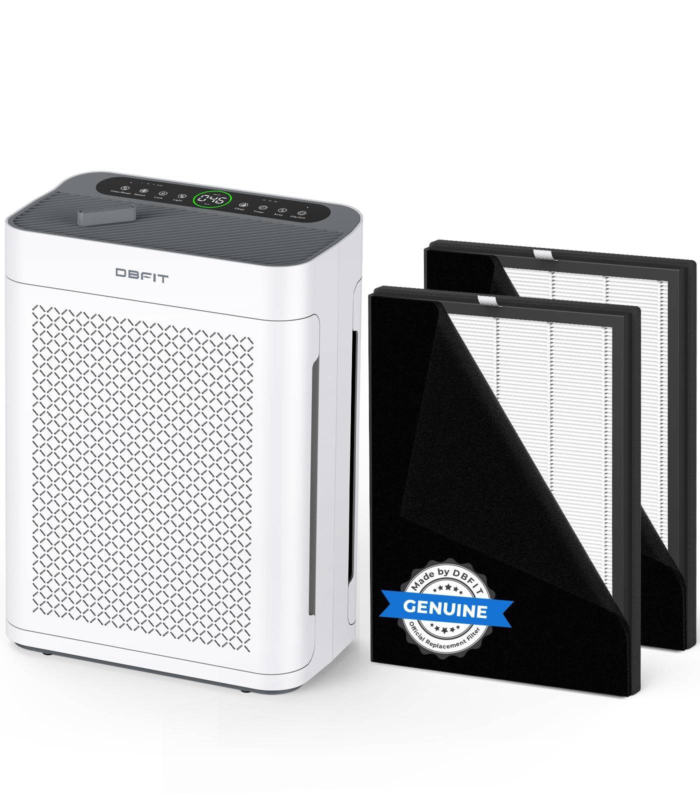 - FILTER REPLACEMENT REMINDER– The AP2410 air purifiers for home large room take the guesswork out of maintenance with a smart filter reminder light. When the composite filter (HEPA + Activated Carbon) is used up, the light turns on, so you’ll know it’s time to replace it. For peak performance and fresher air, replace the composite filter every 3–6 months and always choose genuine DBFIT filters—engineered to fit perfectly and last longer (search on Amazon B0FFMMGPTB ). Tip: Remove the plastic wrap from the new filter before first use