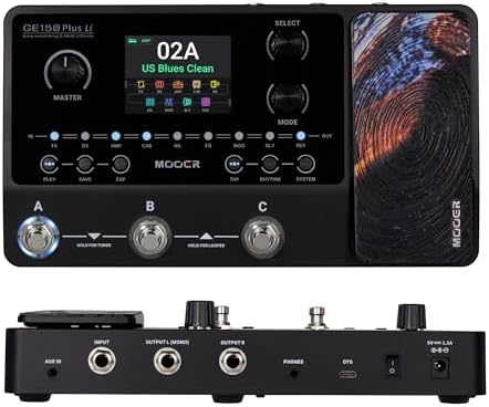 MOOER GE150 Plus Li Black New Guitar Amp Modelling Multi Effects Pedal Compact Guitar Jamming Tool Looper Drum Machine with 9hrs Battery and Three Footswitches Controller