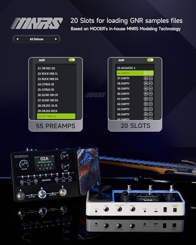 • GE150 Plus Li provides memory for up to 198 preset patches, giving users a comprehensive range of tonal possibilities for various musical styles. Presets can be crafted through effects such as reverb, modulation, and dynamic enhancements, and most importantly, 55 precise preamp models developed using MOOER’s intelligent nonlinear sample technology.