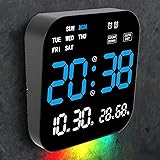 【Multi-function Display】The LED Large Digital Wall Clock has a size of 10.24X10.24 IN screen display, showing temperature, humidity,alarm clock, time, day of the week, and date all in place. Stay updated with all the necessary information at a glance. 【Modern Night Light】The bottom and screen with night lights that can switch colors , it will provide a warm atmosphere for your living room. It can also light up the room so that you don't need to turn on the light when you go to toilet at night. 【Auto DST & Auto Brightness】Switching between winter and summer time through remote control. Also, It has the brightness of the clock to your preference with ten levels of automatic sensitivity and ten levels of manual brightness adjustment. make it comfortable for human eyes at any time. 【Timer and Countdown Functions】The timer and countdown days functions can be used through the remote control. After setting the corresponding values, the time and countdown days will be displayed in rotation It is making perfect for cooking, workouts, and various time-sensitive activities. 【Convenient Remote Control】The included remote control makes operating the wall clock even easier and more convenient. Adjust settings and switch between functions effortlessly from a distance.