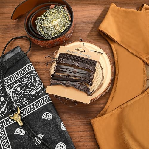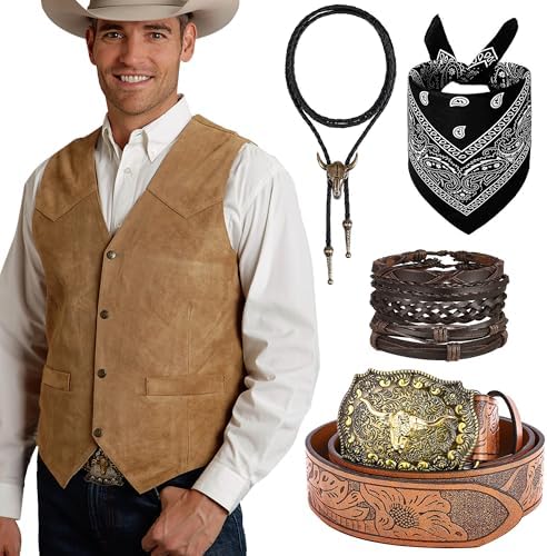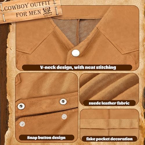 RIOSO Cowboy Outfit for Men Western Suede Leather Vest Belt Necktie Set Men's Cowboy Costume Accessories (without Hat)