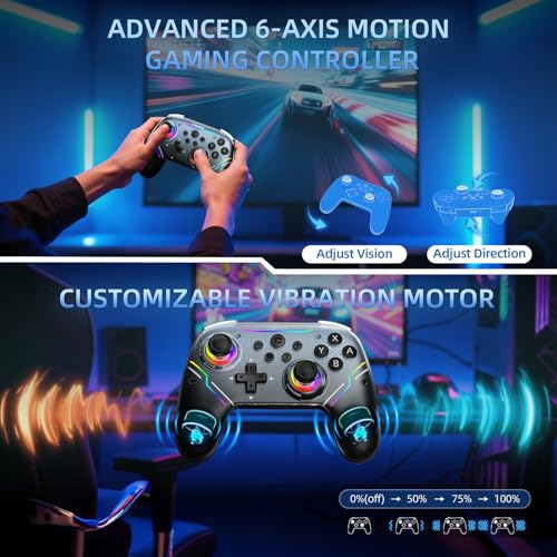 - Compatible with Switch 2,Switch/OLED/lite.The pro controller is comfortable and smooth, the controls and buttons are very responsive and easy to operate. It’s perfect compatible with switch System,Supports wake up, motion controls settable rumble.fit for all Switch games such as Zelda, Splatoon 2, Mario Kart 8 Deluxe, ect.(Switch 2 wake-up function not supported)
