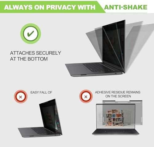 - 【Ideal for Everyday Use and Open Workspaces】: Uses the recommended two-step installation method to ensure a stable, anti-shake fit, with no adhesives and no sticky residue on your laptop screen. The filter stays securely in place even when closing the lid, and installs in just seconds — offering lasting, worry-free privacy protection