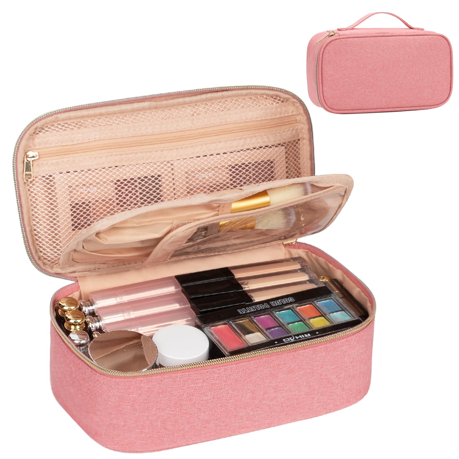 OCHEAL Makeup Bag, Multifunctional Make Up Bags Large Compact Makeup Organizer Bag Cosmetics Toiletry Brushes Storage Case for Women Girls Makeup Case with Handle Divider-Pink
