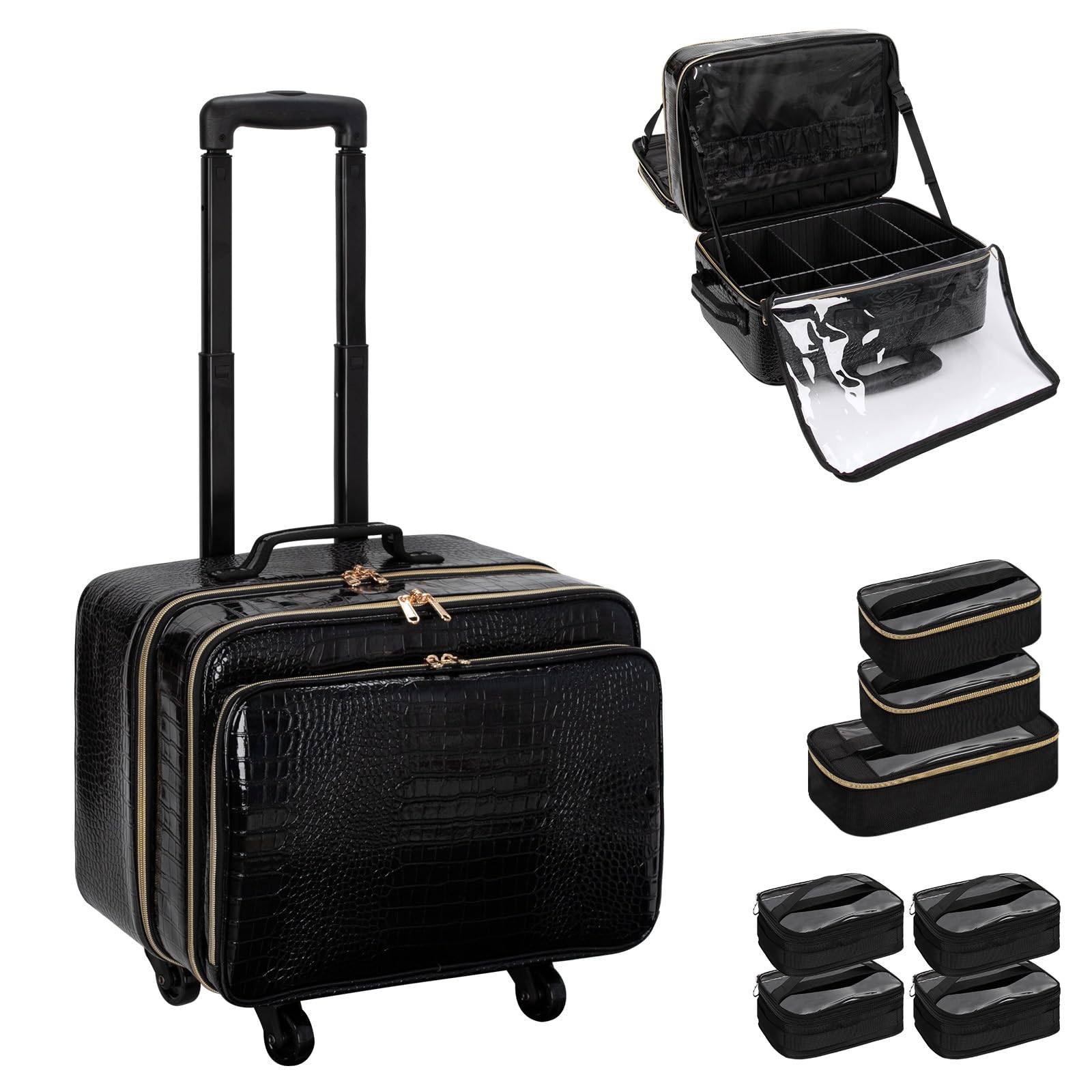 - QUALITY & CONVENIENCE - The makeup bags for women is made of quilted water-resistant fabric. Top leather carry handle is easy to carry. Double-way zippers and bottom PVC gasket tabs make this cosmetic bag easy-pulling.Must have for women and girls