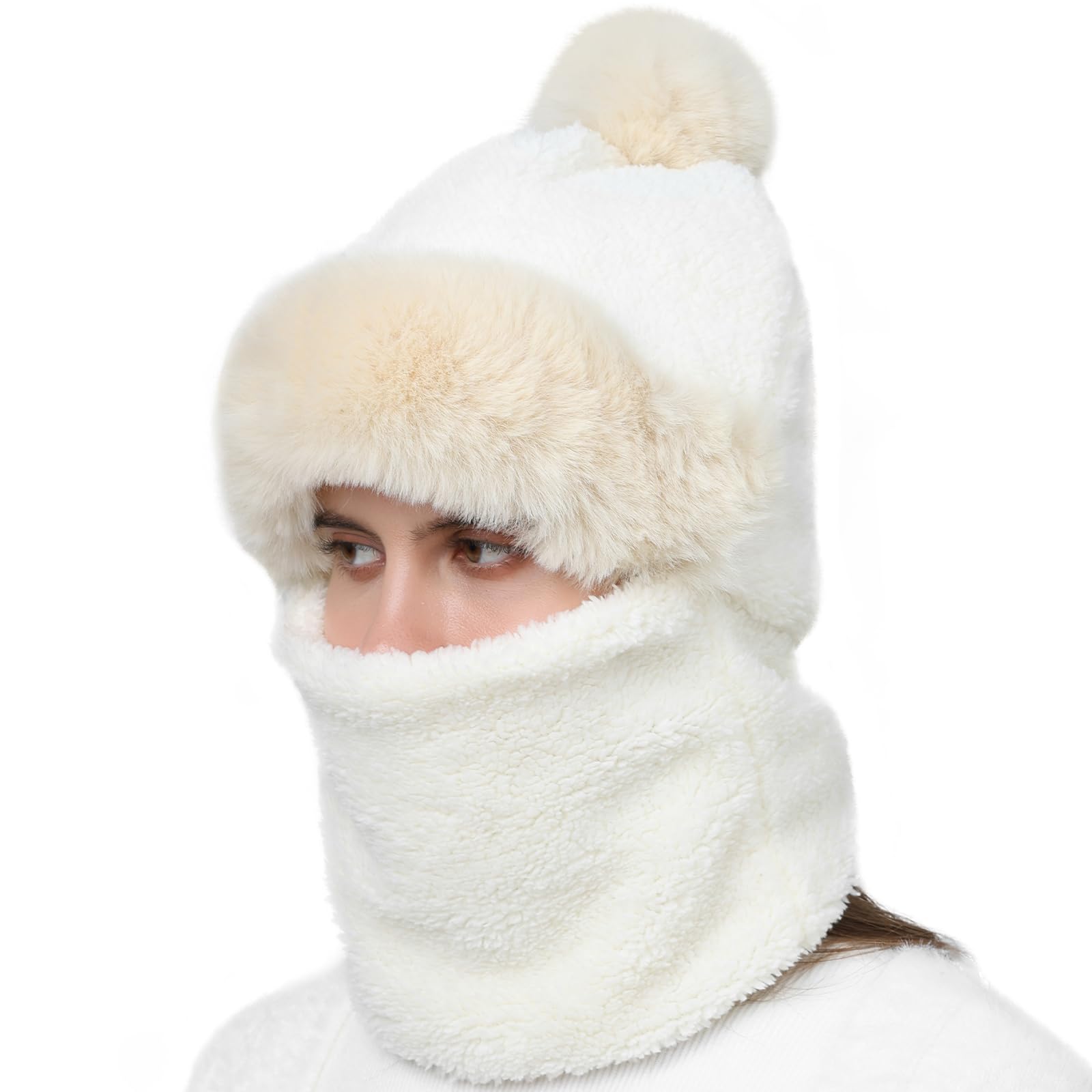 Passionbility Scarf for Women, Hooded Scarfs 2-in-1 Hat and Scarf Set Warm Womens Winter Hat Fuzzy Soft Plush Thick Hats