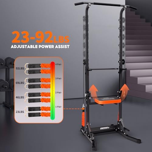 ONETWOFIT Power Tower Pull Up Bar Station Assistive Trainer, Multi-Function Adjustable Height Dip Station for Home Gym Workout, Strength Training Fitness Equipment, Pull Up Stand 360LBS