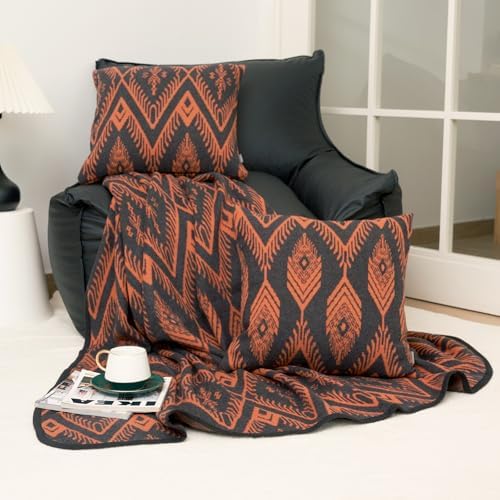 - HOME DECOR - Vibrant oringe color with classic Bohemian style patterns make the merino wool blanket and throw pillow covers set a perfect combination of decoaration for home, bedroom, sofa, couch, patio, camping, picnic