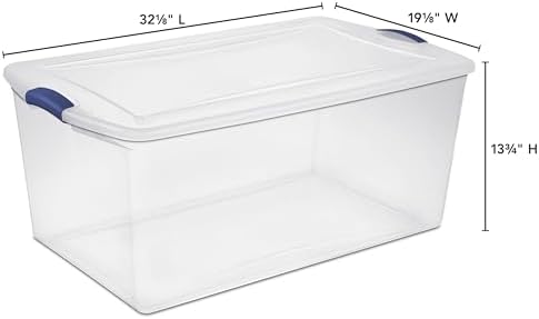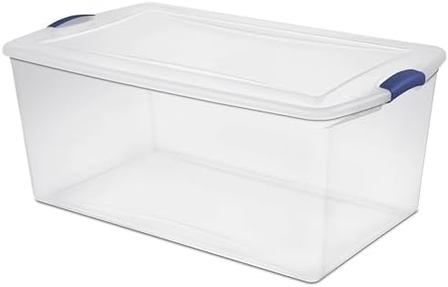 Step up to this versatile 105 quart clear latching storage bin and get organized! The clear base and lid allow you to easily view and locate stored contents from any angle. The color accent latches keep the lid attached to the base, ensuring items stay contained. The recessed lids help bins stack, allowing for efficient use of vertical space. This large - size plastic storage container is perfect for organizing decor and other bulky items. It serves as the ideal solution for a variety of storage challenges, helping to bring order to closets, craft rooms, and dorms!