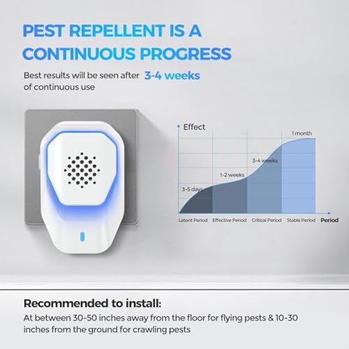 - Pest repellent is a continuous progress: The typical results can take 1-2 weeks, depending on the severity of the pest infestation. You can see the electronic pest-repellent results within 3-4 weeks! TIPS: In the first few days of using the repeller, it is customary to see even more pests appear in your home. Do not panic! They are just trying to move out of your home.