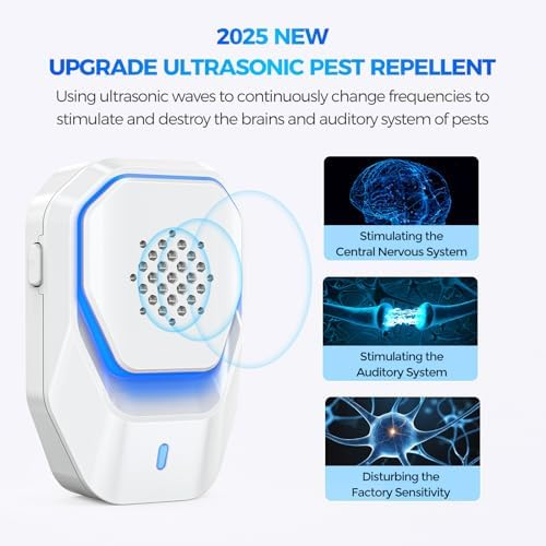- Upgraded ultrasonic pest control repeller: The mouse repellents ultrasonic plug-in stimulate the brain and auditory system of fleas, rodents, roaches, mice, insects, mosquitoes, ants, rats, bed bugs and other insect pests, thus causing them to run away from your home
