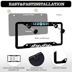 HCSS Moon Phase Mountains License Plate Frames - 2 Pack Funny Night Sky License Plate Holder, Aluminum Metal Rust-Proof Waterproof Car Decorative Tag Frame for Standard US 12x6 Inch