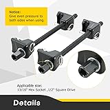 Heavy Duty Strut Spring Compressor Tool: Acymner MacPherson Spring Compression, 13/16" Hex Socket 1/2" Square Drive to compress the coil spring to replace the shock absorber unit or spring quickly and safely ; For repairs on bent struts, strut tubes and damaged pieces. Durable and Sturdy: Our MacPherson strut spring compressor kit is constructed with forged hooks and center screw hardened for maximum strength and longevity, designed to withstand extreme pressure in any environment. Heat-treated forcing screw and safety latches for locking hook to spring. Easy to Operate: Attach the brackets completely onto the spring, tighten, and remove the strut; Lubricate threads with anti-seize compound for prolonged life. This spring compressor tool set is ideal for professional mechanic and automotive repair novice. Safe Design: The strut spring compressor tool comes with detent pins that keep the compressor from flying off the coil spring. Locking it onto the spring so it can't come off until you pull it back, improving the safety during use. Wide Application: The heavy duty strut spring compressors features a threaded length of 11”, making it compatible with most vehicle’s MacPherson strut springs; Attach the threaded rods so that the hooks are set 180° apart; Evenly compress both sides of the strut spring compression tool.